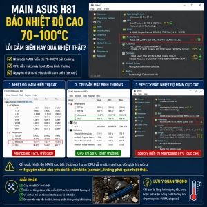 Hiện tượng main Asus H81 báo nhiệt độ cao 70–100°C trong đa số trường hợp là: